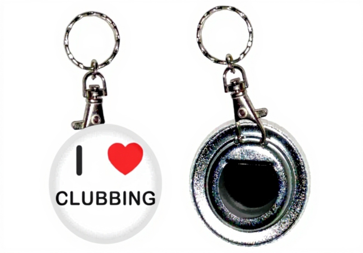 Porte-clés décapsuleur BadgeBeast I love Clubbing 55mm